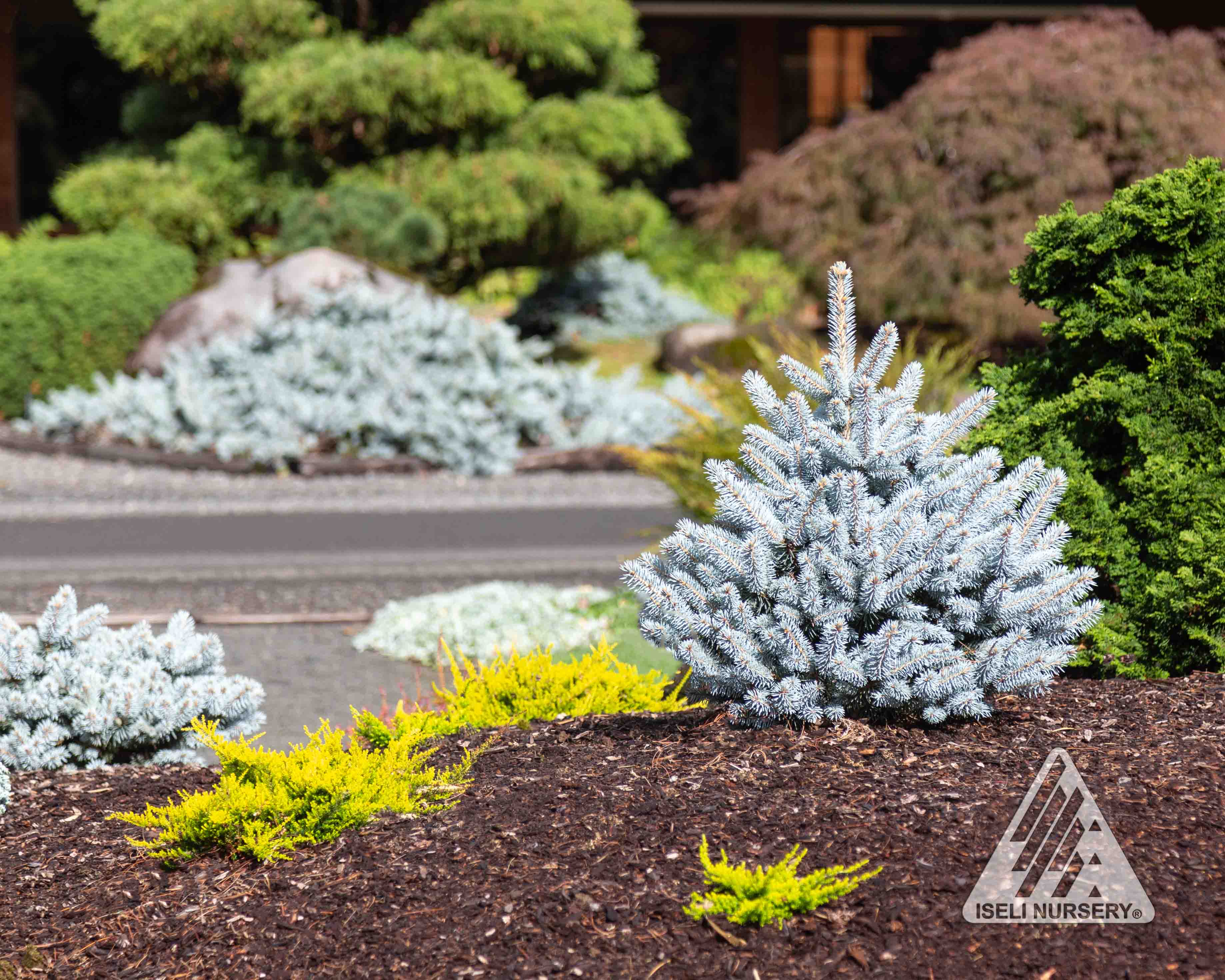A cross between a male ‘Montgomery’ and a female ‘Hoopsii’, this bold new Iseli® introduction unites its parents’ best characteristics. Monty® has a classic Christmas tree form, and its long, thin needles are bluer than blue. Its compact size, full, well-branched habit, and shimmering foliage make this dwarf blue spruce a versatile specimen tree perfect for today’s smaller landscapes.
