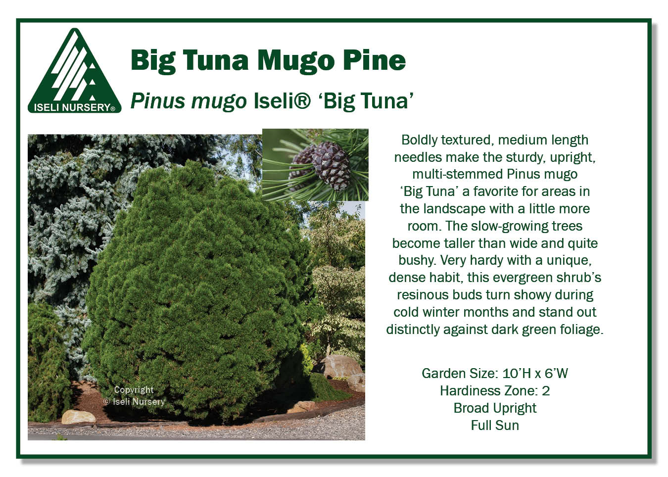‘Big Tuna’ a favorite for areas in the landscape with a little more room. The slow-growing trees become taller than wide and quite bushy. Very hardy with a unique, dense habit, this evergreen shrub’s resinous buds turn showy during cold winter months and stand out distinctly against dark green foliage.