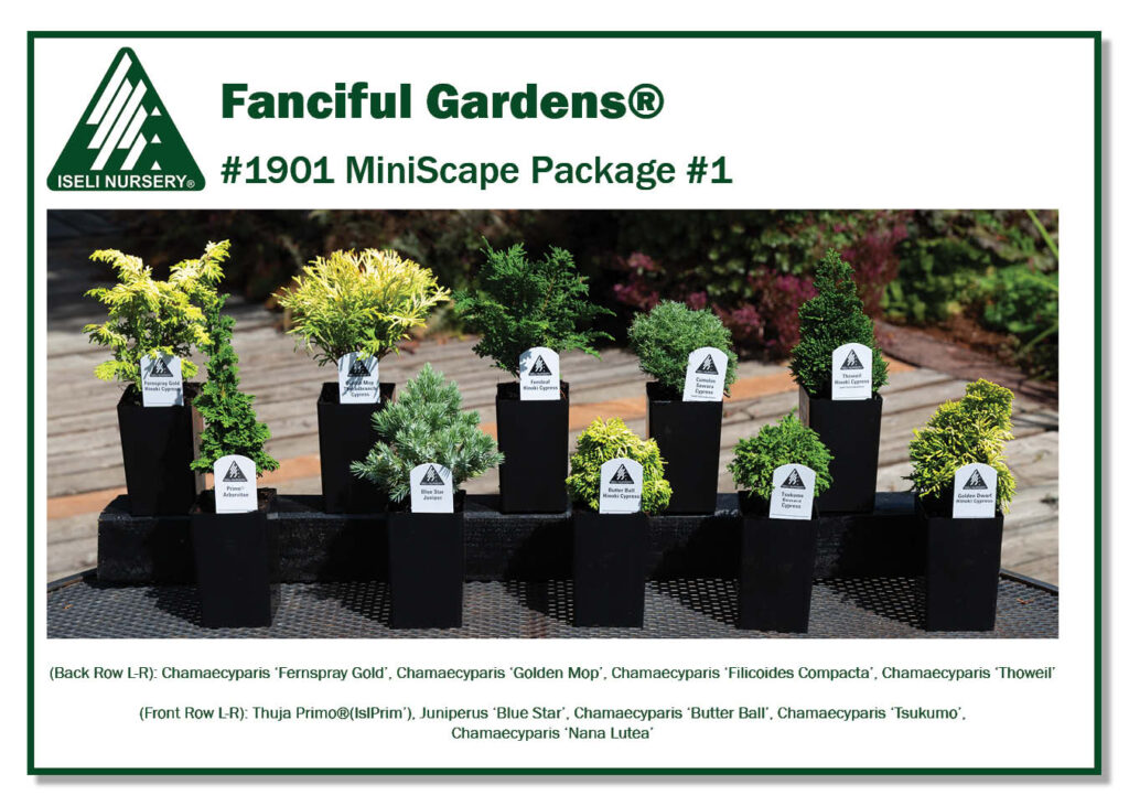 The Miniscape #1 Package consists of 10 different cultivars featured in our Fancy 2 container – a square 2 3/8″ x 3 3/4″ deep band pot.